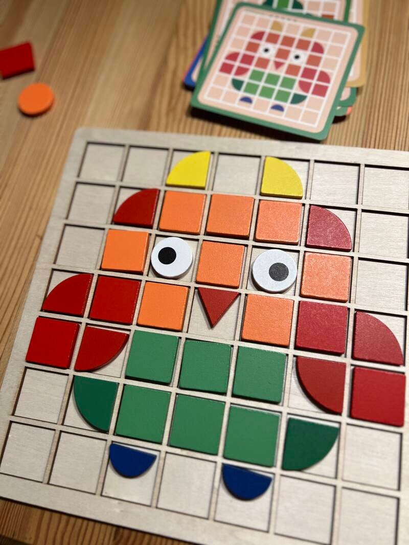 Spiel oder Lernspiel? Hier seht ihr ein einfaches Legematerial, welches mir in der Diagnostik jedoch super hilft. Werden Muster erkannt? Kann das Kind vielleicht sogar Spiegelbilder legen? Kann es sich auf dem Feld orientieren? Wie sieht es mit der Feinmotorik aus? Kennt es bereits geometrische Formen?... Spannend!